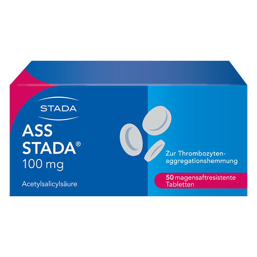 ASS STADA® 100 mg magensaftresistente Tabletten mit einer magenfreundlichen Formulierung können zur Vorbeugung von Herzinfarkt, Schlaganfall und Problemen des Herz-Kreislauf-Systems bei vorbelasteten Patienten beitragen. Der Thrombozytenaggregationshemmer verhindert die Bildung von Blutgerinnseln und kann vor Gefäßverschlüssen schützen. Die Tabletten müssen nur 1-mal täglich mit ausreichend Flüssigkeit eingenommen werden. Die ASS STADA® 100 mg magensaftresistenten Tabletten enthalten Acetylsalicylsäure, welche als Wirkstoff gegenüber Thrombozyten aggregationshemmend wirkt. Als „Thrombozyten“ werden sehr kleine Zellen im Blut bezeichnet, die das Blut zum Gerinnen bringen können. Solche „Blutgerinnsel“ können bei Herzerkrankungen oder bei Patienten mit Schlaganfall in der Vorgeschichte gravierende Folgen haben.